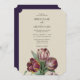 Uma bela design de casamento de tulipas roxas e túlipas burgundy. Um design único que usa botânicos de tulipas de aquarela com um bege rústico e fundo roxo. Um design de tulipas florais moderno com elementos roxos moveis. Um elegante e moderno design de convite para casamento de tulipas. Também estão disponíveis itens de papelaria de casamento e outros formatos de convite de casamento.