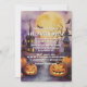 O convite do festival Spooky Halloween apresenta uma ilustração aquática de uma noite de Halloween com jack o'lanterns, morcegos e o Moon do cheio.