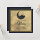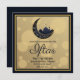 Convite para celebrações Iftar ou Eid para Ramadã em tons de ouro e azul escuro. Design tem uma borda azul-escura e dourada, um fundo decorativo de ouro e uma lua azul-escura com decorações de ouro e uma mesquita azul-escura amontoada na lua. Algumas imagens de vecteezy.com