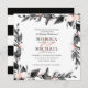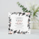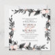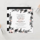 Folha e flor elegantes inspiraram design de convite de casamento com galhos delicados de folhagem em preto, rosa de cinza e coral em um fundo branco que apavora seus nomes e detalhes de casamento. Cartões invertidos a faixas pretas e brancas. Um design moderno e clássico para casamentos chic elegantes para qualquer estação.