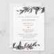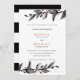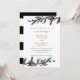 Folha e flor elegantes inspiraram design de convite para o casamento, com galhos delicados de folhagem em preto, cor-de-cinza e coral em fundo branco. Cartões invertidos a faixas pretas e brancas. Um design moderno e clássico para casamentos chic elegantes para qualquer estação.