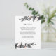 Projetado para coordenar com nossa coleção de casamentos florais de cor d'água do Moonlight Bloom, este elegante cartão de detalhes botânico apresenta um galho de flores pintadas de cor d'água em cor rosa-claro, cinzas e preto, tocando o texto e os detalhes desejados. Cartões invertidos a faixas pretas e brancas. Um design moderno e clássico para casamentos chic elegantes para qualquer estação. Considere detalhes como acomodações de hotel, códigos de grupo, transporte, instruções, informações de recepção de boas-vindas e sua URL do site de casamento. Você pode até fazer upload de um mapa para o lado inverso usando a função Personalizar.