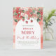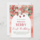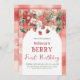 Celebre o bebê que está prestes a nascer "Doce como Frutas Vermelhas" com este convite caprichoso e inspirador em vermelho, verde e flor de morango para o seu Chá de Bebê Menina