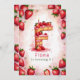 Celebre um aniversário especial com este delicioso convite de bolo de morango "F"! Este charmoso design de aquarela apresenta um bolo divertido e festivo, com a forma da letra "F", decorado com morangos frescos, gelo cor-de-rosa, e uma vela de aniversário brilhante. O fundo cor-de-rosa macio com morangos dispersos adiciona um toque lúdico. Personalize com o nome, a idade e os detalhes da festa do seu filho para uma comemoração de aniversário com um morango. Perfeito para crianças que amam festas de temas frutas ou aniversários de verão!
