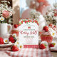 Você está convidado para uma primeira festa de aniversário de morango! Este convite temático de morango fofo é perfeito para o seu evento!