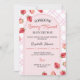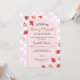 Um convite para morango de chá de fraldas doce cor de orelha rosa-d-água não é apenas um convite; é uma bela maneira de expressar sua entusiasmo por acolher o novo pequeno pacote de alegria. Este design doce de morango apresenta morangos a cores-d'água com fundo xadrez rosa. Junto com uma fonte divertida de script cardíaco.
