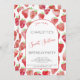 Bonita e moderna coloração d'água morango doce 16 convite de aniversário de menina. A parte traseira apresenta um padrão de morango correspondente para uma ajuda extra da cutena. Personalize o texto para se adequar à sua celebração. Arte original de Nic Squirrell