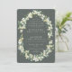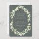 Uma recepção verde de cinzas escura apenas convite para o casamento, com morangos pintados manualmente e caules de eucalipto dispostos em uma bela estrutura botânica. Todo texto é totalmente editável e os pontos dispersos na frente e atrás podem ser excluídos antes de fazer o pedido, se preferir. Veja esta Coleção na minha loja para convites com opções de texto de alternativo, cores diferentes e para coordenar itens.