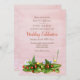 Este morango num convite para o casamento de prados apresenta um aglomerado de plantas de morango silvestre na parte inferior do cartão mostrando a sua multidão de morangos pequenos, maduros e vermelhos, com minúsculas algas amarelas, nots-me-esqueço azuis e uma margarida-solteiro saindo entre as folhas de morango - seus detalhes de casamento estão em um gráfico quadrado branco semitransensível que revela parcialmente a cor rosa pálida por katz_d_zynes | Parte da coleção de morangos e flores selvagens de katzdzynes > https://www.zazzle.com/collections/119185498872390969