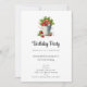 Um convite de aniversário com um gráfico de verão de um monte de morangos transbordando em um balde.
