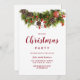 Este Convite de festas de Natal festivo e de inverno é o design perfeito para exuberar essas vibrações caseiras. Apresenta pinheiro verde florestal e ramos, groselhas vermelhas, cones de pinho em fundo branco. É o país, elegante e bonito; o design perfeito para abraçar seus convidados.
