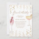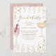 Convites de chá de panela bonitos com um pano de fundo dourado e reluzente e um roteiro personalizado "brunch and bubble" com coquetéis pintados à mão com aquarela. Escolha entre duas cores de fundo e itens correspondentes em nossa loja.