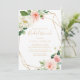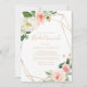 Este convite de brunch elegante, geométrica, verde e ouro é perfeito para um chá de casamento rústico. A design apresenta rosas brancos, cor-de-rosa e pincéis pintados à mão e um toque de verde, adoráveis quadros geométricos de ouro, inspiradora beleza artística.