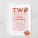 Convite de aniversário tema morango. Letreiro brilhante com morangos. Detalhe de bolinhas doce no verso. Vermelho e rosa. Perfeito para o segundo aniversário de bebê ou criança, Edite facilmente o texto moderno e divertido. Combina com o tema de festa tutti fruity / twotii fruity ou tema berry sweet. Encontre acessórios correspondentes na loja Gemma Harlow Creations ou transfira o design para seus produtos favoritos.