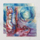 Colorida, caprichosa, romântica, pintura contemporânea figurativa simbolista em aquarela para uma figura lendária espiritual e mística em tons de azul, rosa, vermelho, roxo, violeta e branco por Alessandro Lumini 1988. Design artístico e sofisticado fácil de personalizar para cerimônia de casamento, cartão de anúncio de núpcias, cartões de mesa, save-the-date, cartões de agradecimento, chá de noiva, festas de aniversário de 16 anos e quinceañera, chá de revelação de noivado romântico, Natal, festa de Natal no escritório, reuniões familiares, celebrações de Ano Novo, Dia de São Patrício, Carnaval, festas de Terça-Feira Gorda, aniversários de casamento, encontros, formaturas escolares, concertos, recitais ou praticamente qualquer evento que você desejar!. Morgan le Fay, também conhecida como Morgane, Morgaine, Morgana e outras variantes, é uma poderosa feiticeira de Avalon na lenda arturiana. Avalon (provavelmente derivado da palavra celta galesa afal, que significa maçã; é uma ilha lendária presente na lenda arturiana, famosa por suas maçãs. Aparece pela primeira vez no relato pseudo-histórico de Geoffrey de Monmouth de 1136, "A História dos Reis da Grã-Bretanha", como o local onde a espada de Caliburn (Excalibur) do Rei Artur foi forjada e, posteriormente, onde Artur foi levado para se recuperar de seus fer