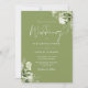 Esta elegante vegetação botânica verde-musgo deixa convite para casamento pode ser personalizado com suas informações em tipografia quic com suas iniciais de monograma no reverso. Projetado por Thisnotme©