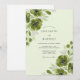 This design features lush watercolor anemones in shades of moss and olive green, gracefully blossoming across a pale mint backdrop. The painterly style creates a soft, romantic atmosphere perfect for a seasonal botanical event. Delicate foliage and airy leaves complement the bold floral blooms, offering an organic and elegant aesthetic.