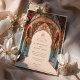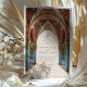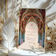 Comemorar o amor com este convite de casamento islâmico, que foi concebido de forma elegante. Apresentando padrões florais vibrantes em tons de vermelho rubi, rosa-coral, pêssego pastel e azul-lacrimogênio, os intrincados arcos evocam uma mesmerante mistura de arquitetura islâmica e estética Art Nouveau. Delicar detalhes florais, incluindo girassóis, dahlias e motivos arabescos, adornam os tetos e colunas salpicados, criando uma obra-prima que simboliza unidade e tradição. O roteiro do ornamentado e o fundo bege suave adicionam um toque de elegância do eterno, fazer perfeito para casais que buscam um tema de casamento sofisticado e inspirado culturalmente.