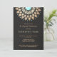 Chic e elegante com um toque contemporâneo. Imagem digital realista de rico fundo de linho preto dá um sentimento rico, sofisticado e fashion. Bela decoração de roseta inspirada em mandala de folha dourada falsa com centro azul turquesa. Fácil personalização da parte traseira para a cor desejada. Nota: textura de linho e folha dourada são imagens digitais - não são a coisa real.