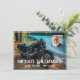 Anuncie a vida do seu ente querido com esta carta que apresenta uma bela ilustração de uma motocicleta estacionada perto de um lago.