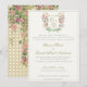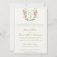 Mountain Wildflower Garden Wedding Invitation. This elegant sophisticated invitation has a beautiful romantic wedding crest with summer garden florals, ready for your own branded initials. Summer wildflowers in pink, blues, buttery yellows cascading around a sage green wedding crest. Elegant wedding invitation has beautiful calligraphy in sage and gold, ready to personalize and customize with your own names and wedding information. The back of the card features a garden vine of pink flowers peeking through a golden trellis. Match it with one of our beautiful Mountain Wildflower Garden Wedding Invitation envelopes, save-the-date, rsvp or detail cards. A beautiful elegant and sophisticated Wedding Collection to make your own.