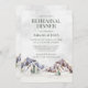 A rustic invitation for your winter wedding rehearsal dinner with a snow covered mountain and soft watercolor patterns.