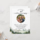 An elegant wedding anniversary invitation with watercolor mountains and pine trees and 1 special photo that you can customize with your details.