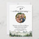 An elegant wedding anniversary invitation with watercolor mountains and pine trees and 1 special photo that you can customize with your details.