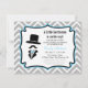 Um chique, um na moda e um hipster como o bebé regam o convite que tem um toque de lunático e do divertimento. Caracteriza um design simples para esboçar o olhar afiado de um cavalheiro que inclua um chapéu alto, um moustache encaracolado e uma jaqueta do smoking completos com um laço. O fundo é aquele de um teste padrão de ziguezague cinzento e branco clássico e elegante da viga. Cores clássicas de cinzento, de preto, de branco e o azul que é perfeito para esse cavalheiro pequeno que está em sua maneira. Personalize facilmente com seus detalhes do partido. Você pode igualmente mudar a cor cinzenta do fundo a uma cor de sua escolha.