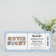 A fun and feminine blue striped ticket-style invitation featuring retro marquee lettering and a cute popcorn icon, perfect for a birthday movie night party. Ideal for cozy home screenings, backyard cinema nights, or slumber party movie marathons. Personalize with your party details for a unique and stylish invite.