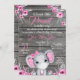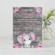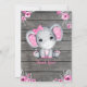 Rapariga muito fofa Elefante/amendoim em Máscara por um Chá de fraldas de Drive By (comemorar na quarentena Pandêmica do Covid19) com flores de aquarela e fundo de madeira. Todos os campos são editáveis. Adequado para aniversário ou Chás de fraldas, chá de Fralda, gole e veja.