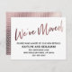 Mantenha seus amigos e familiares atualizados com seu novo endereço usando esses cartões de anúncio simples e elegantes. Você pode inseri-los em suas mensagens no tema do casamento ou compartilhá-los pessoalmente, como você vê ajustado. Quer você seja um recém-casado ou apenas queira uma design única para deixar sua tribo saber como encontrá-lo, esta carta é versátil o suficiente para qualquer um. Ele apresenta um gráfico de tipografia bonito que diz "Nós nos movemos" na frente e um padrão retrô inspirado por Marrocos. Cada um desses gráficos foi embelezado com uma camada de ouro-rosa suave, faux-metálica, para um efeito festivo. Use os campos modelo para adicionar todos os seus próprios detalhes para personalizar este design para seu próprio uso. 105 //