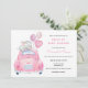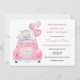 Convide os entes queridos para comemorar os pais a serem! Apresentando um carro cor-de-rosa com elefante giro em cima com balões cor-de-água rosa. Personalize com seu texto. Clique em "Personalizar mais" para editar o estilo, o tamanho e a cor da fonte, se desejar.