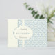 Este cartão de anúncio do Aqeqa islâmico, muito fofo e úmido, apresenta uma design de cor damasco azul e suave sobre um fundo brilhante. Linda caligrafia islâmica no fundo. Este convite para o Aqiqah muçulmano é excelente para meninas, rapazes e gêmeos!