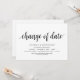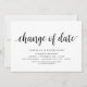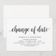 Mude o cartão de data. Este é o convite para o casamento remarcado (adiado / adiamento) cartão (Mudança de data), no tema de design minimalista moderno e simples, fonte preta. É a maneira perfeita de fazer o anúncio de reprogramação do evento para os seus amigos e familiares.