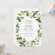 Anúncio de Casamento Adiado para informar aos convidados que a data do seu evento será alterada. Personalize com suas palavras - pode ser usado para qualquer evento, como casamentos, chá de noiva, chá de bebê, etc. Apresentando ramos de verde água e flores brancas varrendo os cantos do design. Personalize com suas informações ou clique em "Clique para personalizar ainda mais" para editar estilos de fonte, tamanho e cores.