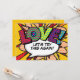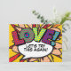 Personalize com seus nomes e detalhes para anunciar a mudança de data do seu evento especial. Tema de arte pop de quadrinhos moderno, design retrô divertido, perfeito para casamentos, chás de noiva, chás de bebê, batizados, festas de noivado, celebrações de aniversário, formaturas, festas de aniversário e outros eventos especiais ao longo do ano! Um design legal, moderno e divertido que coloca o pow no seu dia. Criado por Thisisnotme©