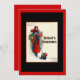 Mulher de casaco vermelho fazendo compras com o Terrier Escocês é um cartão de Natal elegante que remete ao estilo deco dos anos 20 e 30. Este é um convite para uma casa aberta ou festa.