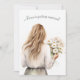 Arte aquarela de uma jovem com buquê margarida sobre fundo branco para um chá de panela. Todo o texto pode ser alterado.