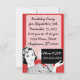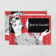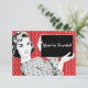 Mulher da Vintage dos anos 50 segurando um sinal em um fundo de bolinhas brancas e vermelhas. Personalize-o com o seu próprio texto. Legal!