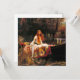 Cartão com a pintura a óleo de John William Waterhouse The Lady of Shalott (1888). Uma bela mulher de vestido branco escapa num barco do seu destino olhar para todo o mundo através de um espelho e tecer uma tapeçaria dele — mas ao ver o Príncipe Lancelot, a maldição segue a Senhora de Shalott até ao seu fim. As cores brilhantes do outono pintam esta cena trágica. Um presente inspirador para os entusiastas de Arthuriana e os coletores de pré-raphaelite.