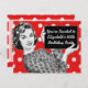 Convites com uma ilustração da década de 1950 de uma mulher segurando um sinal. Personalize-os com o seu próprio texto e imagem de fundo. Perfeito para uma festa de aniversário com tema retroativo.
