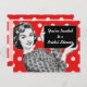 Convites com uma ilustração da década de 1950 de uma mulher segurando um sinal. Personalize-os com o seu próprio texto e imagem de fundo. Perfeito para um chá de casamento com tema retro.