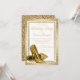O elegante convite de aniversário branco e dourado da mulher, com belos calçados de alto salto de ouro em um elegante fundo brilhante de diamante branco e ouro. Esses convites de festas de aniversários elegantes, brancos e dourados são facilmente personalizados para seu evento simplesmente adicionando seus detalhes no estilo de fonte e na redação de sua escolha.