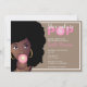 Este design apresenta um tema de bublegum. Mulher de preto afro, borbulheira rosa pingue-pongue, borda branca, fundo bege/castanho. Excelente para um chá de fraldas de menina.