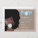 Este design apresenta um tema de bublegum. Mulher de preto afro, borbulheira rosa pingue-pongue, borda branca, fundo bege/castanho. Excelente para um chá de bebê.