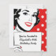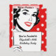 Convites com uma ilustração da década de 1950 de uma mulher segurando um sinal. Personalize com seu próprio texto e imagem de fundo. Perfeito para uma festa de aniversário com tema retroativo.