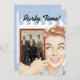 Convite de aniversário com a ilustração da safra 1950 de uma mulher com uma foto. Personalize-o com sua própria fotografia e texto. Legal!