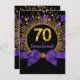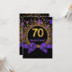 Convite de aniversário roxo e dourado da mulher, setenta com pontos roxos bonito e dourados e rajadas estrelas. Este belo convite de aniversário roxo e dourado é facilmente personalizado para o seu evento simplesmente adicionando os seus detalhes no estilo de letra, cor e texto da sua escolha. Este é um design impresso sem joias reais, brilho, arcos, etc.