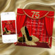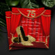 Elegante vermelho e ouro brilhando alto salto calçado mulher pisando em setenta e cinco convites de festas de aniversários 75 com belos calçados de salto alto brilhando ouro em um fundo de cortina vermelha e dourada. Este elegante convite de aniversário vermelho e dourado é facilmente personalizado para o seu partido ou evento, adicionando detalhes do evento, estilo de fonte, tamanho de fonte e cor e texto.